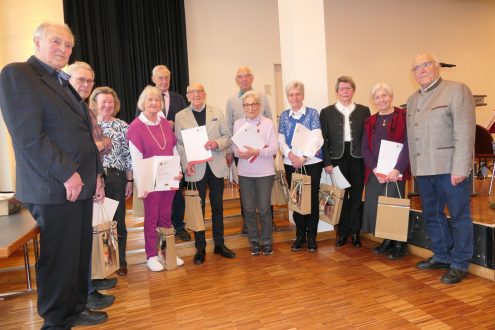 Zehn der fünfundzwanzig Jubilare waren anwesend und konnten ihre Urkunden samt Präsent (alles aus der Umgebung) entgegennehmen: Friedrich Bay (70 Jahre), Uta Mesner (60 Jahre), Ursula Holzhäuser und Klaus Holzhäuser, Ilse Stüdl, Lisbeth Ruoff (50 Jahre), Brigitte Hillebrand und Egon Hillebrand (40 Jahre) und Marianne Milde und Ulrich Scholz ( 25 Jahre). Der Vorsitzende Erich Haas und Gerhard Spieth übernahmen die Ehrungen.